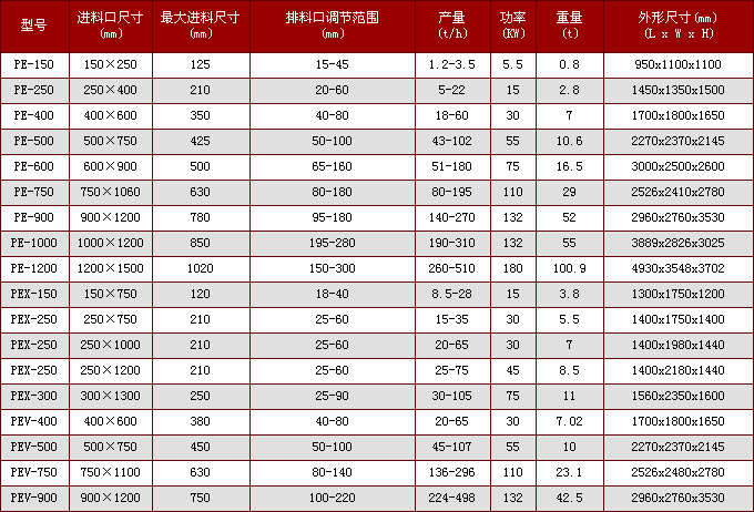 我公司經過多年研究生產以及國內外的成功經驗,所生產的顎式破碎機(顎破,鄂式破碎機)具有高效,節(jié)能的特點。大中小型鄂破機現已成為我公司的主打產品,并且在技術方面已達到了國內外的水平。顎破機在礦山、建材、基建等部門主要用作粗碎機和中碎機。按照進料口寬度大小來分為大、中、小型三種,進料口寬度大于600MM的為大型機器,進料口寬度在300-600MM的為中型機,進料口寬度小于300MM的為小型機。PE系列用于粗破,PEX系列用于中、細破。顎式破碎機(鍔式破石機)結構簡單,工作可靠,使用維修方便。